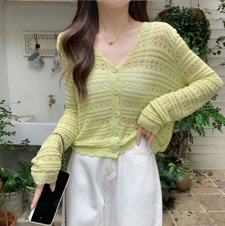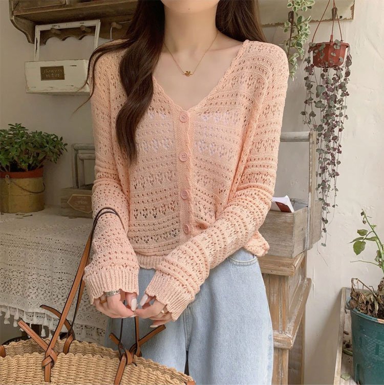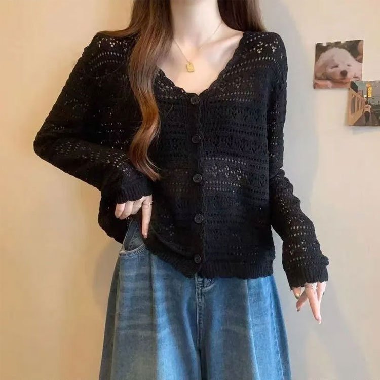 春季新款鏤空針織短外套